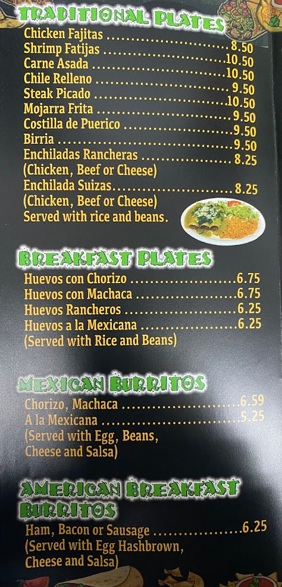 Served with Eggs, Beans, Cheese and Salsa
