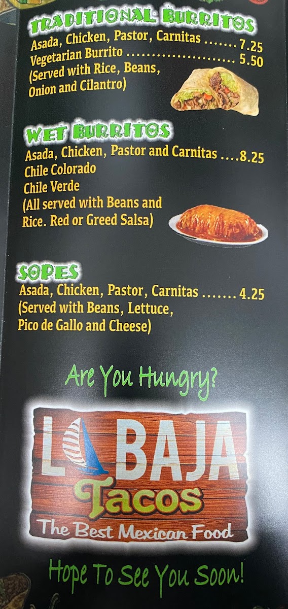 If you’re craving bold, colorful flavors that hit the spot fast, the La Baja Tacos Menu makes it easy to decide what you’re in the mood for. Right when you walk into the spot on 16423 Maplegrove St in La Puente, you can almost guess what’s coming - sizzling meats, fresh toppings, and that unmistakable aroma of Baja-style cooking. And as you look through the options, everything feels familiar in the best possible way, from tacos loaded with juicy carnitas to burritos stuffed generously enough to count as a full meal on their own.